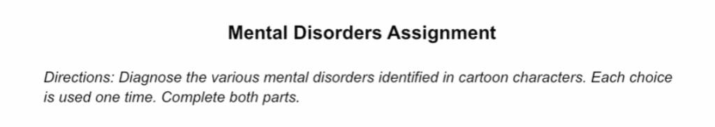 “Diagnose the various mental disorders identified in cartoon characters.”