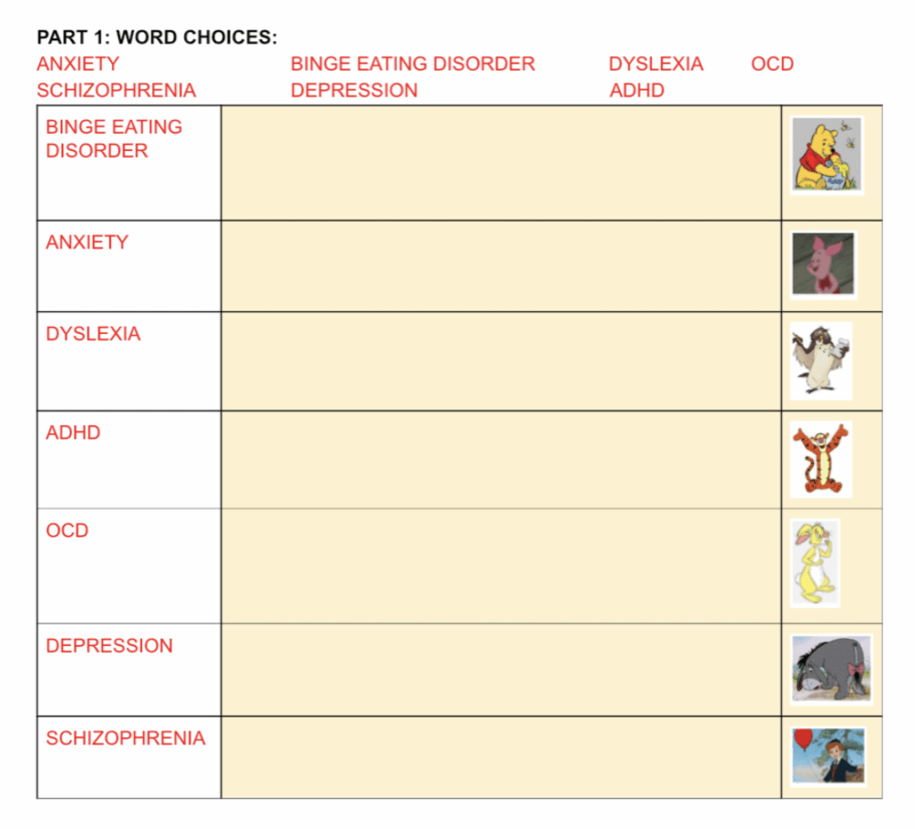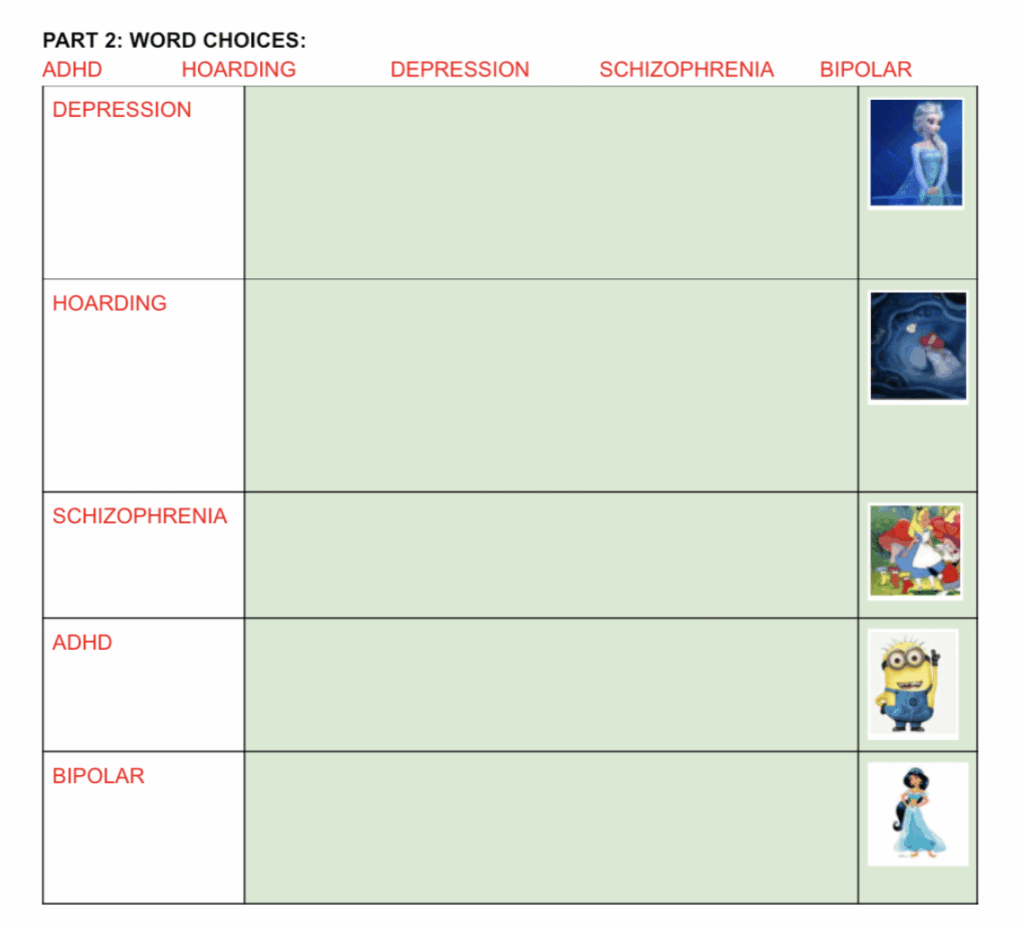 In a 10th grade health class at Hampshire High School, located in Hampshire, Illinois, kids were asked to diagnose Disney characters with mental disorders including ADHD, schizophrenia, OCD, bipolar, hoarding, depression, and more.