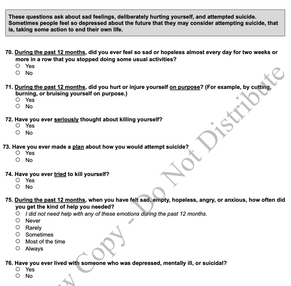 The survey asked about suicidal feelings, including whether students had “ever made a plan about how you would attempt suicide?”