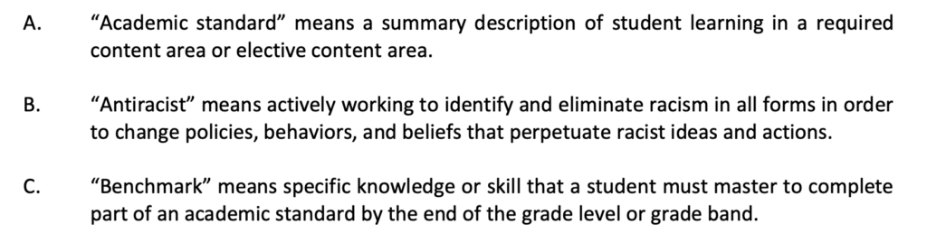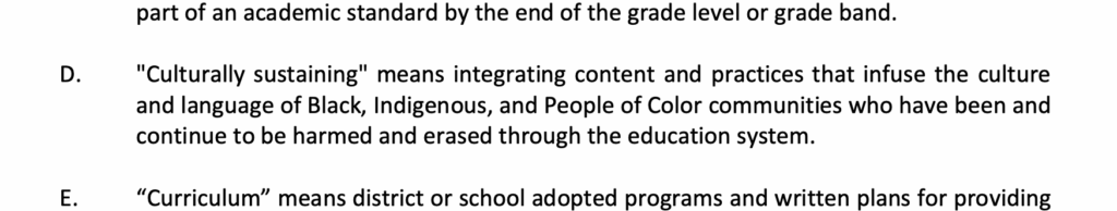 In this statement of definitions, the district also includes “culturally sustaining,” sharing that “Black, Indigenous, and People of Color communities…continue to be harmed and erased through the education system.”