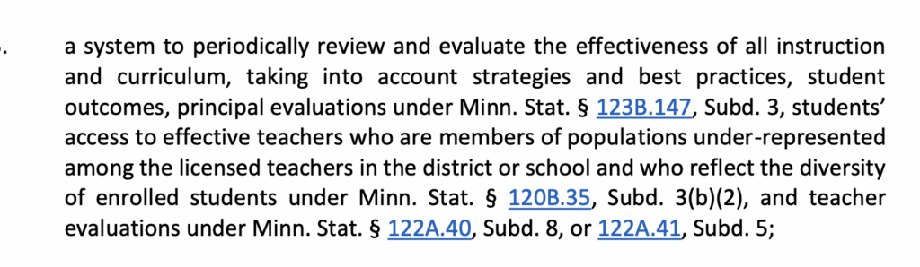 Moreover, as part of the district’s longterm strategic plan, they hope to periodically evaluate students’ access to teachers “who are members of populations under-represented among the licensed teachers in the district or school and who reflect the diversity of enrolled students.”