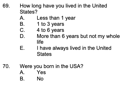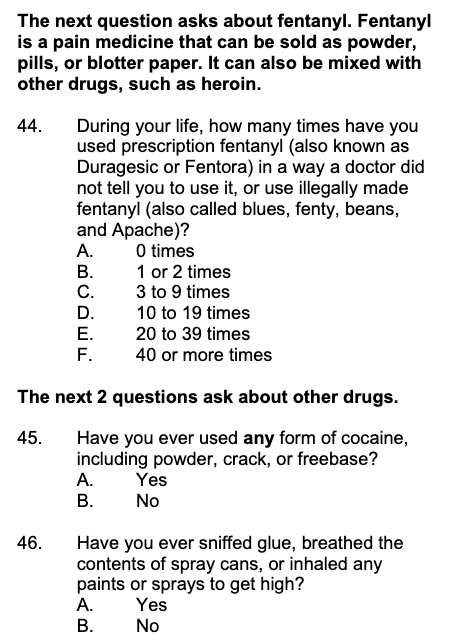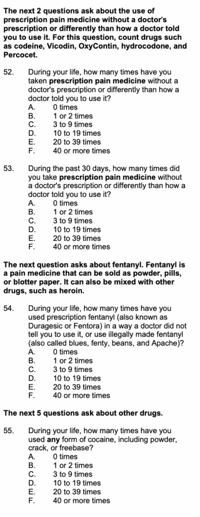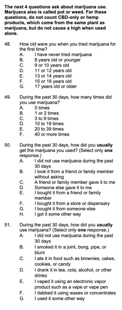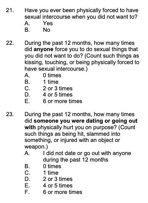 Below are questions from the middle school survey, given to 6-8 grade students: