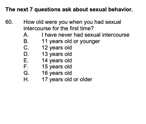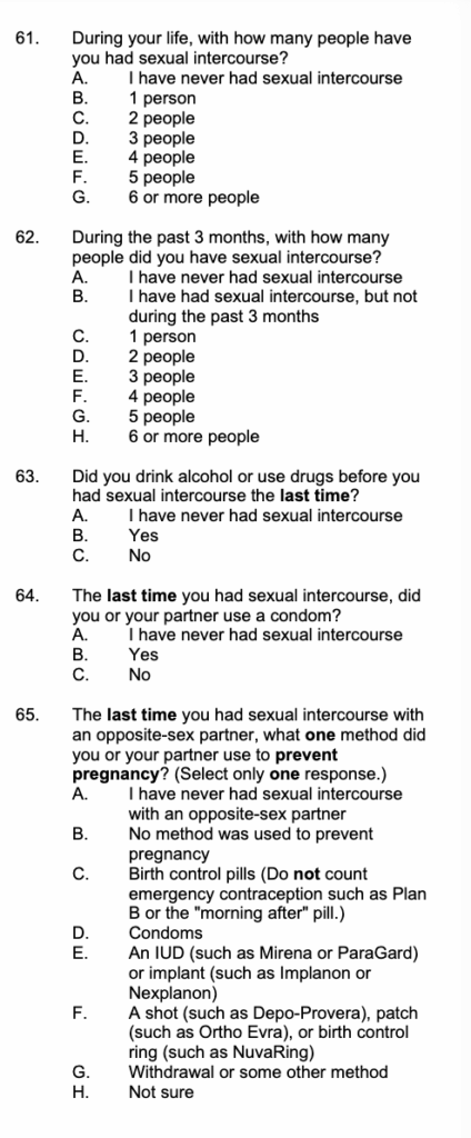 A statewide survey administered to middle school and high school students throughout New Mexico asks highly personal questions about alcohol and drug use, unintentional injury, violence, suicidal ideation and attempts, tobacco use, sexual activity, physical activity, nutrition, weight, sexually transmitted diseases and family and school relationships.