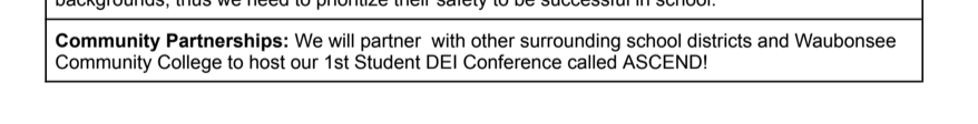 Beyond these initiatives, Oswego 308 underwent another partnership with the Midwest & Plains Equity Assistance Center from October 2023 to March 2024. The overall purpose, according to the “Memorandum of Understanding,” was to increase “school board members’ and district leaders’ critical consciousness.”
