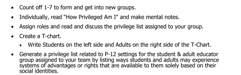 Participants were then asked to read “How Privileged Am I” and rank their privilege in a group of students and educators.