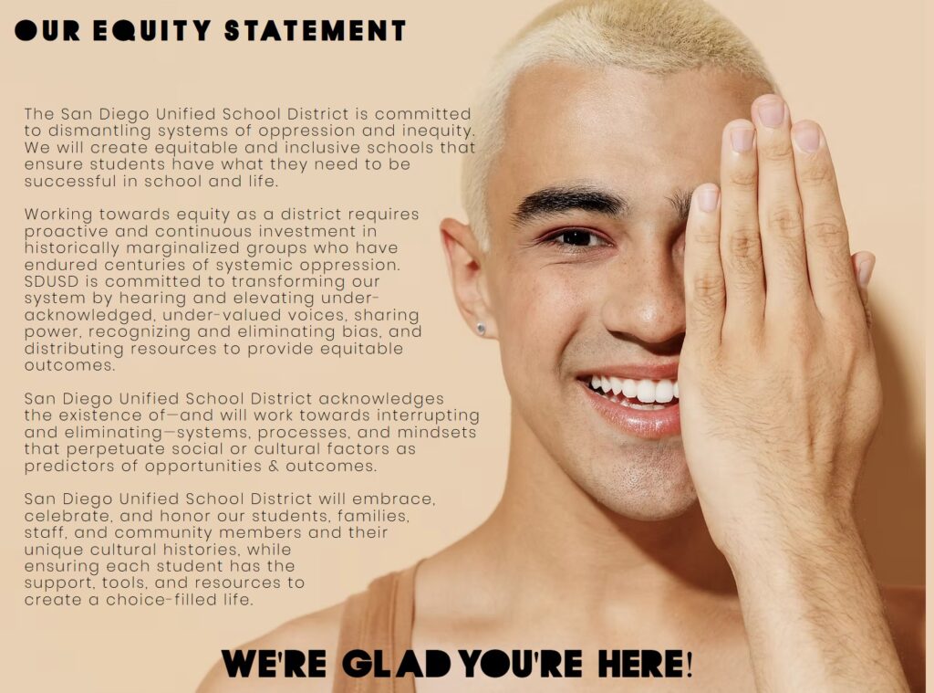 The district’s policy notably promotes clubs based on identity to students, such as “Gender & Sexuality Alliances (GSAs),” “Black Student Unions,” and “Black Ingenious Initiative (BiGI).” The school district additionally has an equity website that the policy links to as a resource. The district’s equity website states that the goal is to eliminate “systemic oppression” and that the district “acknowledges the existence of—and will work towards interrupting and eliminating—systems, processes, and mindsets that perpetuate social or cultural factors as predictors of opportunities & outcomes.”