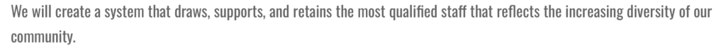 This concludes with, “We will create a system that draws, supports, and retains the most qualified staff that reflects the increasing diversity of our community.”