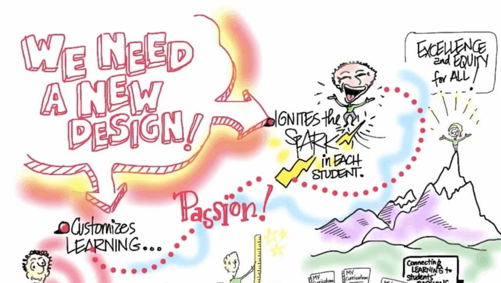A promotional video by Farmington Area Public Schools titled “A New Design for Education” calls for a “fundamental redesign of the educational system.” In this animated video, the narrator criticizes the assembly line through which students receive “predetermined knowledge.”