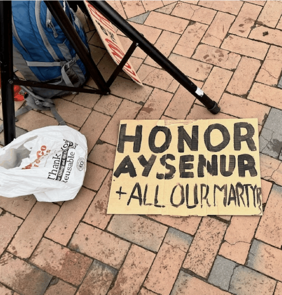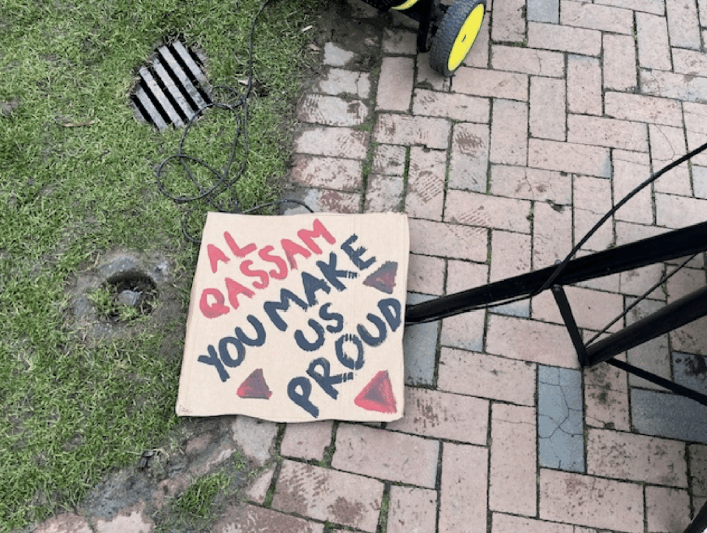 At a February on-campus pro-Palestinian rally, some students carried signs praising Hamas’s military wing, the al-Qassam Brigades, and paying tribute to “all our martyrs.”