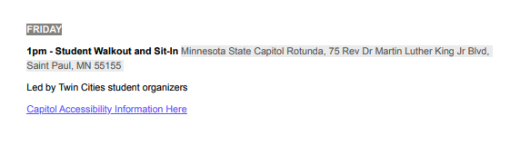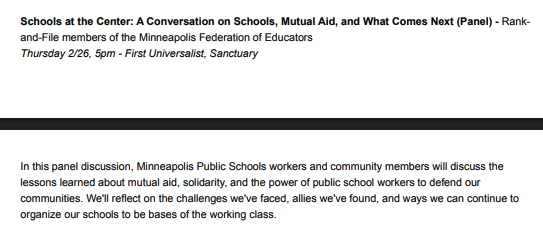 A Minnesota ‘Melt the ICE Week of Action’ (February 25-March 1st) includes a scheduled ‘student walkout and sit-in,’ ‘school patrols,’ and a training session on sanctuary schools facilitated by ‘Rank-and-File members of the Minneapolis Federation of Educators.’ The week of events is facilitated by groups including 50501 MN, Sunrise [Movement] Twin Cities, Twin Cities Democratic Socialists of America (DSA), UNIDOS MN, and Jewish Voice for Peace (JVP) Twin Cities. Training sessions include a focus on “sanctuary schools” and how Minneapolis Public Schools workers “defend our communities” will be facilitated by Take Action MN and “Rank-and-File members of the Minneapolis Federation of Educators.”