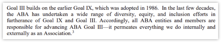 The ABA states, “all ABA entities and members are responsible for advancing ABA Goal III—it permeates everything we do internally and externally as an Association.”