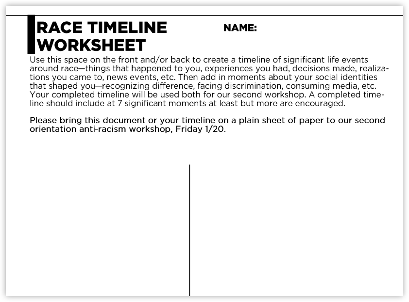 The worksheet required students to “create a timeline of significant life events around race.”