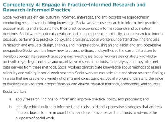 Competency 4: Engage in Practice-Informed Research and Research-Informed Practice