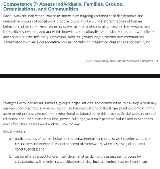 Competency 7: Assess Individuals, Families, Groups, Organizations, and Communities