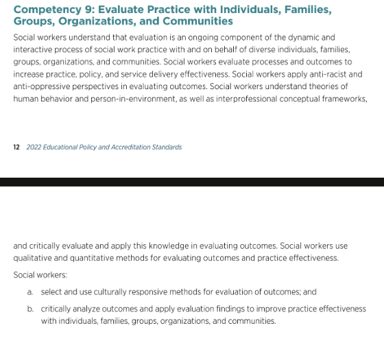 Competency 9: Evaluate Practice with Individuals, Families, Groups, Organizations, and Communities