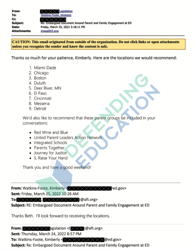 Emails obtained through a Freedom of Information Act (FOIA) request to the U.S. Department of Education (ED) reveal planning and coordinating communications between Biden Administration officials and handpicked outside groups that were invited to be part of the process of establishing a “National Parents and Families Engagement Council.”