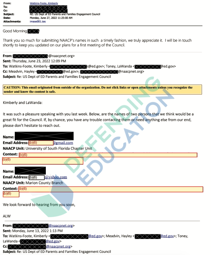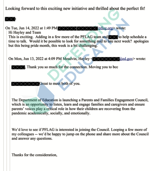 - These emails and documents reveal how The Department of Education during the Biden Administration went about creating an illegal “Engagement Council” and which groups were invited to participate.