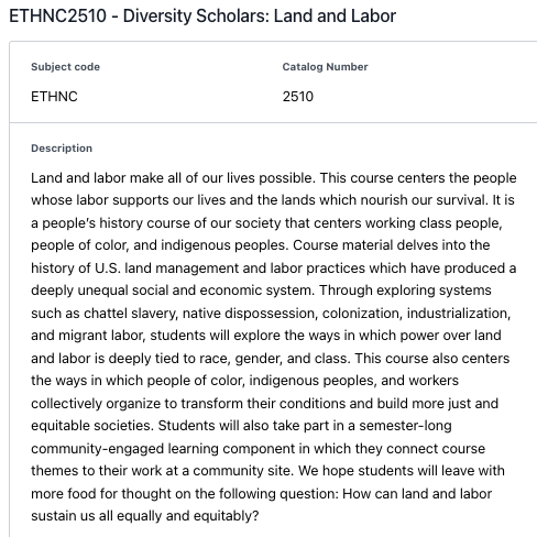 ETHNC 2510 – Diversity Scholars: Land and Labor