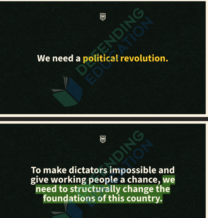 Sunrise Movement states that “we need a political revolution” and “to structurally change the foundations of this country.”