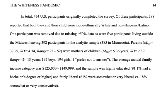 According to the paper, the authors came to their conclusion that “family socialization into the centuries-old culture of Whiteness” perpetuates U.S. racism after reviewing survey results from 392 participants. All of those surveyed were: